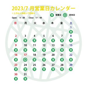 7/17(海の日)は休業となりますのでご注意ください。