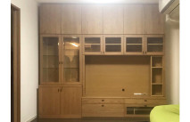 表面材に無垢材を使用したユニット式の壁面収納です。