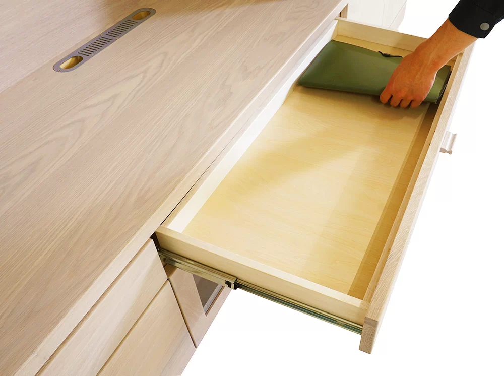 すべて受注生産で行っていますので、お客様のお部屋のサイズに合わせたサイズオーダーや穴あけなどもオプション対応も幅広く行うことが出来ます。天然木無垢、突板を使用しておりますので、木目や色等が画像とは1点ごとに異なります。