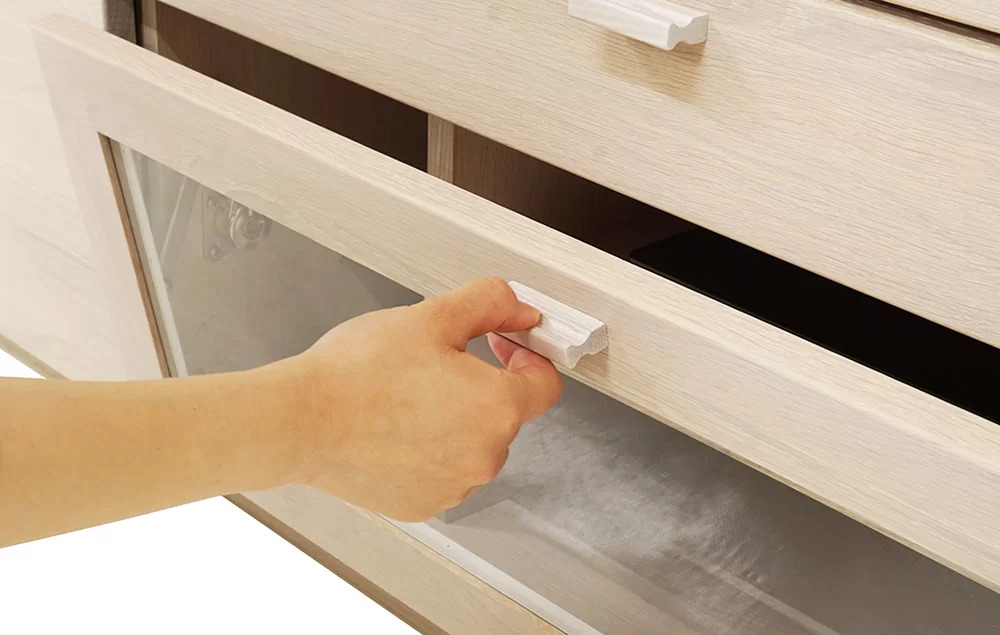 つかみやすいつまみ取っ手仕様にもできます(画像は幅168TVボードA板扉WOWH色)