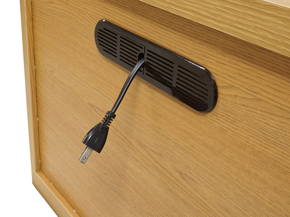 デッキ収納部に設置したデッキから商品背面にある配線孔を使用すれば、スムーズな配線が可能になります。