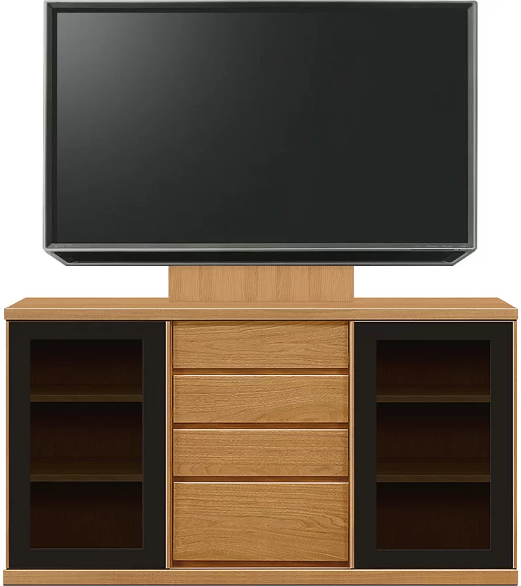 商品左右は引き⼾タイプのガラス⼾で、中央は引き出しです。商品の高さに応じて引き出しの段数が変わります。(高さ64センチ:3段、高さ80センチ:4段、高さ96センチ:5段、高さ112センチ:6段)