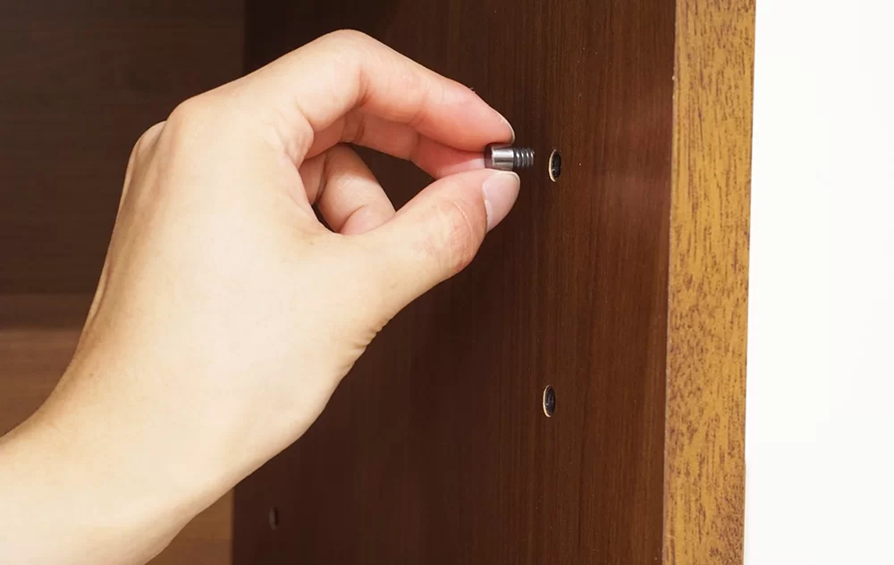 ねじ込み式ダボで耐久性もばっちり(画像は幅150サイドボードH80 WN色)