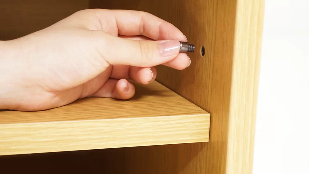 耐久性のあるねじ込み式ダボ(※画像は幅180 TVボードH45 NR色)