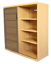 商品左右は引き⼾タイプのガラス⼾で、中央は引き出しです。商品の高さに応じて引き出しの段数が変わります。(高さ64センチ:3段、高さ80センチ:4段、高さ96センチ:5段、高さ112センチ:6段)