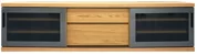 天然木突板を使用した1点ごとに木の表情の違う、シンプルながら天然木の趣が漂うシリーズです。商品左右は引き⼾タイプのガラス⼾で、中央は引き出しです。