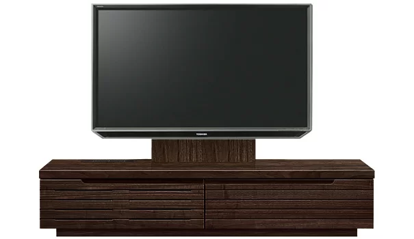 印象的なスリットをデザインし、前板に無垢材を使用した上品かつモダンなシリーズです。前板にスリットがあるため収納内のAV機器との接続もスムーズに行えます。商品左はフラップダウン扉になっており、右は引き出しになっています。