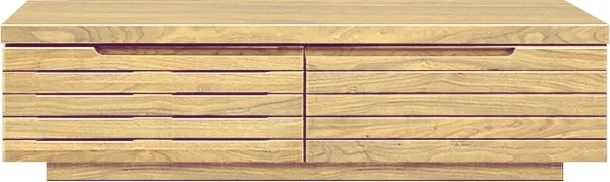 印象的なスリットをデザインし、前板に無垢材を使用した上品かつモダンなシリーズです。前板にスリットがあるため収納内のAV機器との接続もスムーズに行えます。商品左はフラップダウン扉になっており、右は引き出しになっています。