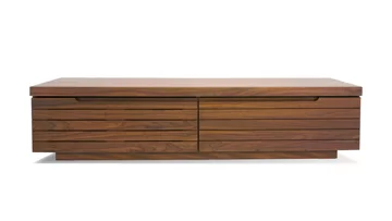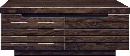 印象的なスリットをデザインし、前板に無垢材を使用した上品かつモダンなシリーズです。前板にスリットがあるため収納内のAV機器との接続もスムーズに行えます。商品左はフラップダウン扉になっており、右は引き出しになっています。