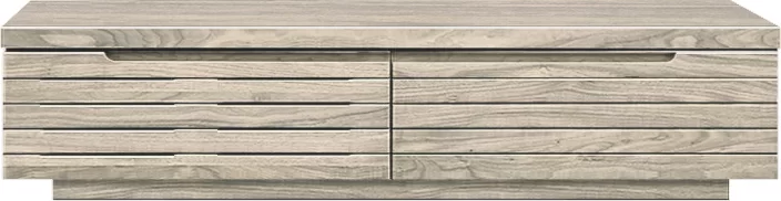 印象的なスリットをデザインし、前板に無垢材を使用した上品かつモダンなシリーズです。前板にスリットがあるため収納内のAV機器との接続もスムーズに行えます。商品左はフラップダウン扉になっており、右は引き出しになっています。