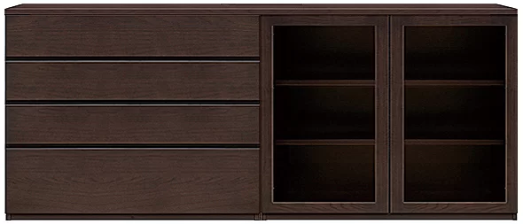 1mのパーツを3つの組み合わせや、60cmmの5つ組み合わせなどで幅3mのローボード、サイドボードとすることが出来ます。