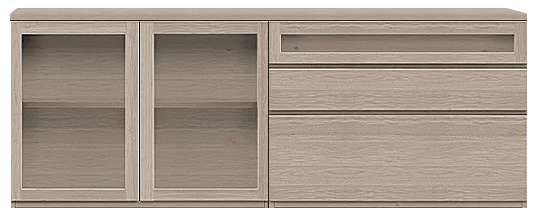 1mのパーツを3つの組み合わせや、60cmmの5つ組み合わせなどで幅3mのローボード、サイドボードとすることが出来ます。