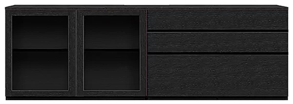 1mのパーツを3つの組み合わせや、60cmmの5つ組み合わせなどで幅3mのローボード、サイドボードとすることが出来ます。