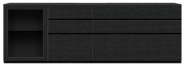 1mのパーツを3つの組み合わせや、60cmmの5つ組み合わせなどで幅3mのローボード、サイドボードとすることが出来ます。