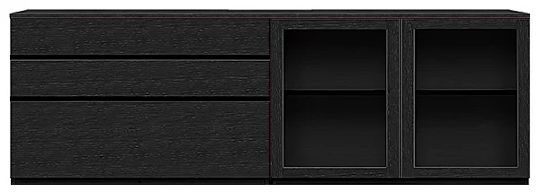 1mのパーツを3つの組み合わせや、60cmmの5つ組み合わせなどで幅3mのローボード、サイドボードとすることが出来ます。