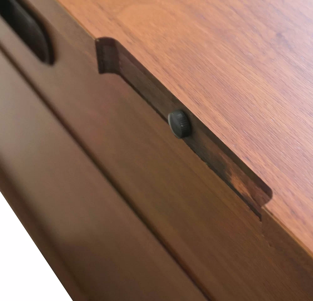 転倒防止機能天板の後ろには、テレビの転倒防止ベルトを付けることができる、ユリアねじが付いています。