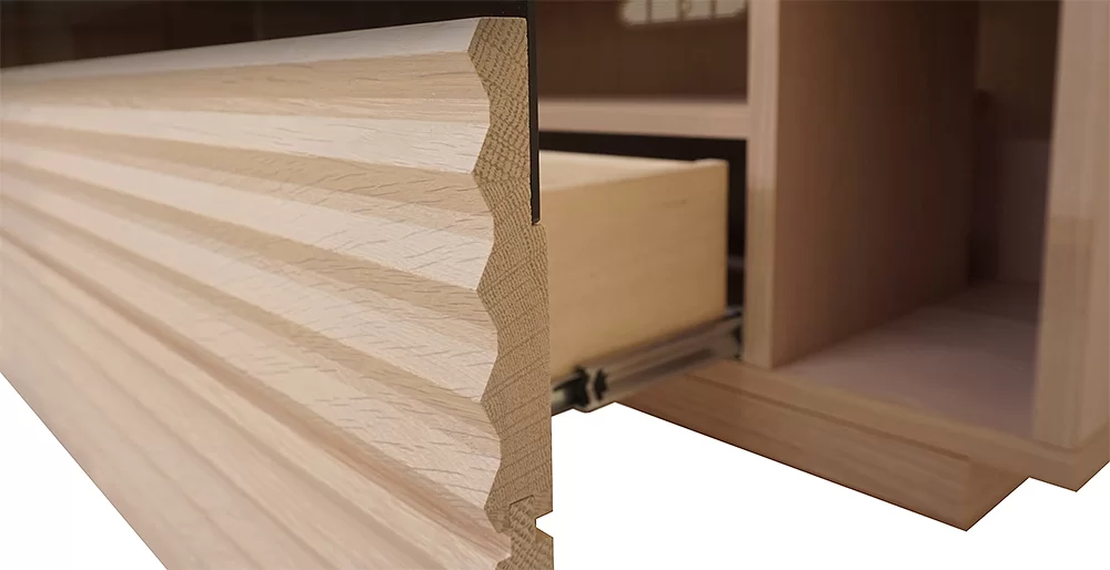 校倉デザイン表面は天然木節有無垢材を採用しているので、木の温かみを感じる事ができます。木目の出方は一つとして同じものがないのでそういった点でもデザインを楽しむ事ができます。