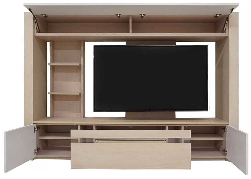 ローボード部扉内部は可動棚タイプの収納(※画像は幅230-TVボード-WOWH色)
