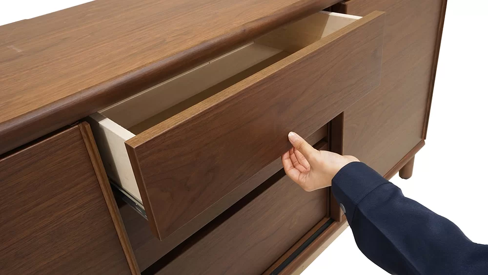深い引き出し引き出しは深く設計されているので、大きなものでも安心して収納することができます。そのため、引き出しを開閉する際に入れているものが引っかかったりする事も起きにくくなっています。