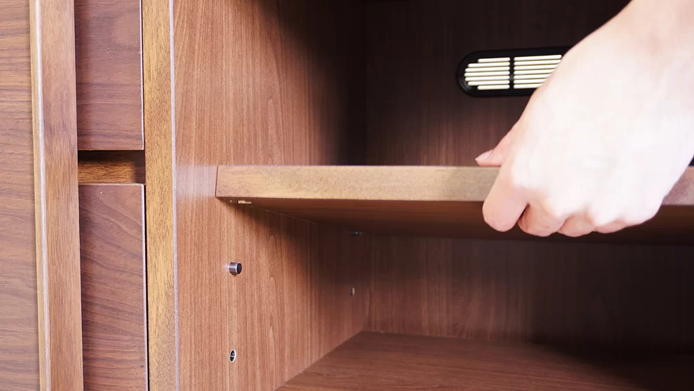 収納部分の棚板は高さが変えられるため、様々な物を収納することができます。