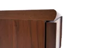 天然木突板を使用した1点ごとに木の表情の違う、シンプルながら天然木の趣が漂うシリーズです。扉は使いやすく場所を取らない引戸を採用し、スムーズに動くローラーを使用しています。木製脚(アジャスター付)の高さが12cmあるので、スタイリッシュさもあり、お掃除ロボットも通過できます。引き戸にはブロンズガラスを使用しており、赤外線を通しつつも、中が見えにくい仕様となっております。また、ローボードには別売りの壁掛けパネルセットを取り付けて気軽に壁掛けスタイルを楽しめます。カラーはウォールナットとオークナチュラルから選べます。