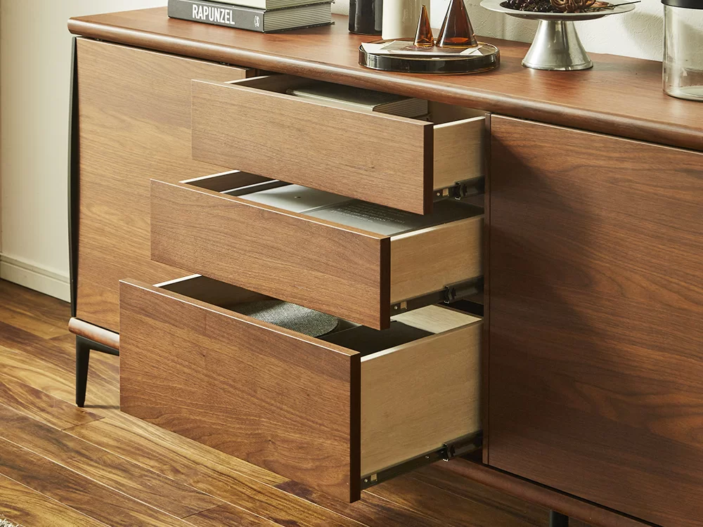 深い引き出し引き出しは深く設計されているので、大きなものでも安心して収納することができます。そのため、引き出しを開閉する際に入れているものが引っかかったりする事も起きにくくなっています。
