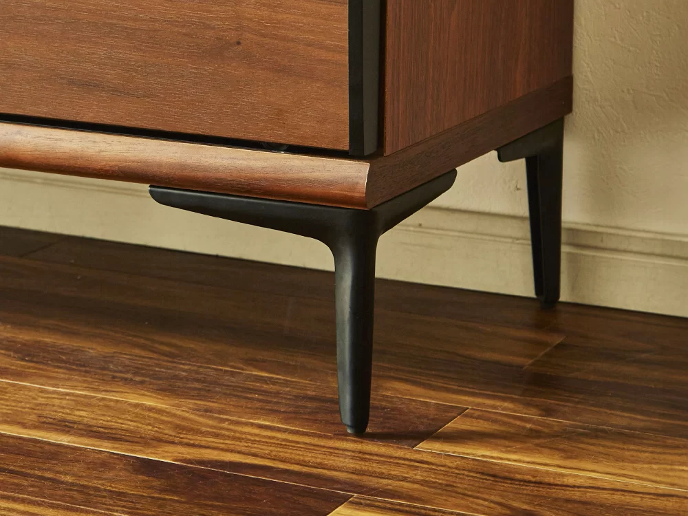 天然木突板を使用した1点ごとに木の表情の違う、シンプルながら天然木の趣が漂うシリーズです。扉は突板貼りガラスを使用しており、赤外線を通しますのでAV機器の操作性も損なわれません。スチール脚で高さが15cmあるのでお掃除ロボットも通過できます。また、ローボードには別売りの壁掛けパネルセットを取り付けて気軽に壁掛けスタイルを楽しめます。カラーはウォールナットとオークナチュラルから選べます。