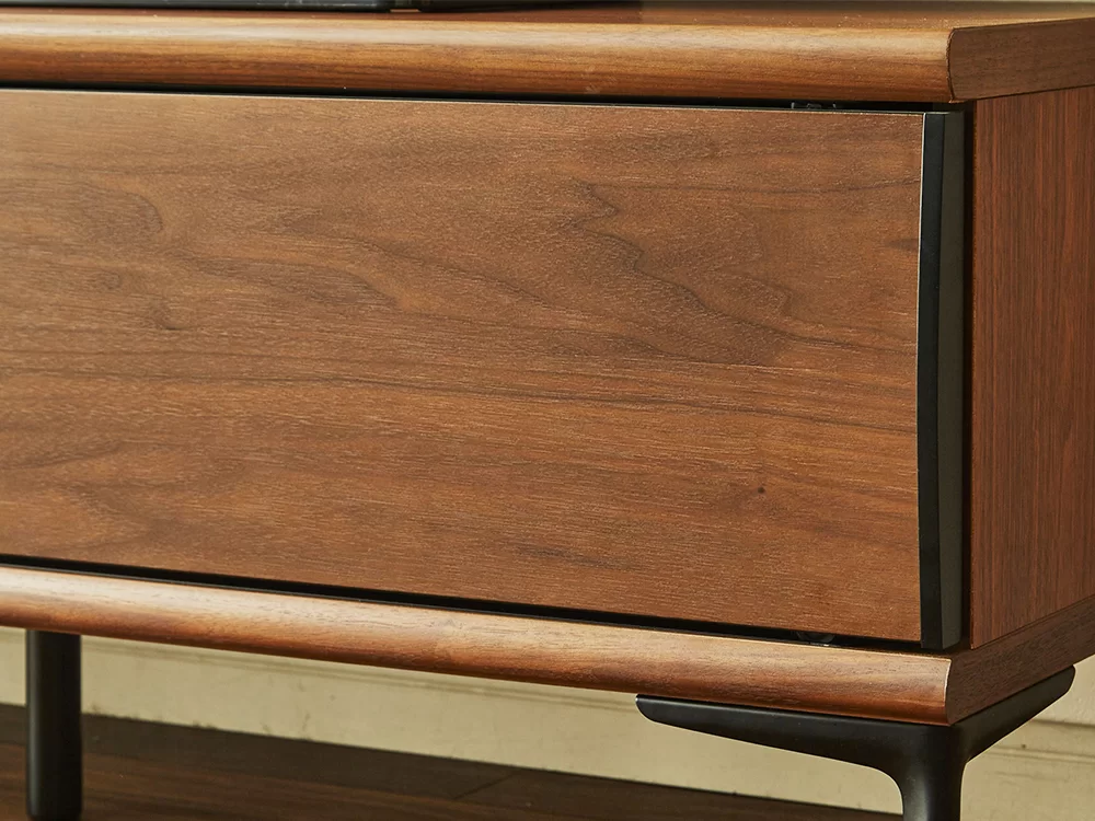 天然木突板を使用した1点ごとに木の表情の違う、シンプルながら天然木の趣が漂うシリーズです。扉は突板貼りガラスを使用しており、赤外線を通しますのでAV機器の操作性も損なわれません。スチール脚で高さが15cmあるのでお掃除ロボットも通過できます。また、ローボードには別売りの壁掛けパネルセットを取り付けて気軽に壁掛けスタイルを楽しめます。カラーはウォールナットとオークナチュラルから選べます。