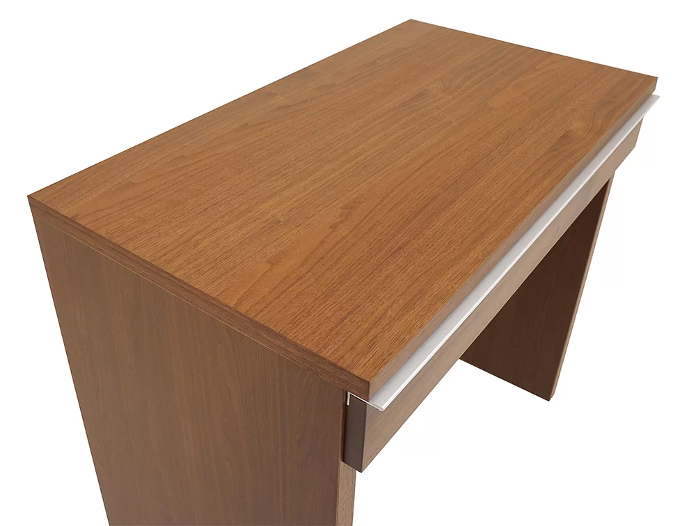 幅80のデスクです。天板下に1段引出があります。カラーはウォールナットです。天然木無垢、突板を使用しておりますので、木目や色等が画像とは1点ごとに異なります。お届けまで 約20日要します。