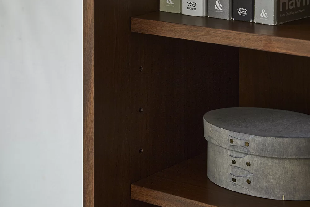 棚は可動式となっているので、しまう物の大きさに合わせてスペースを調整し、無駄なく収納できます。