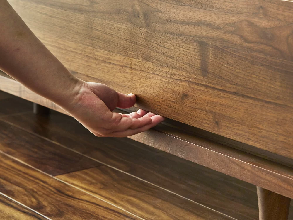 前面扉は無垢を使用。上質感を手触りから感じられます。(※画像は 幅180 WN色)