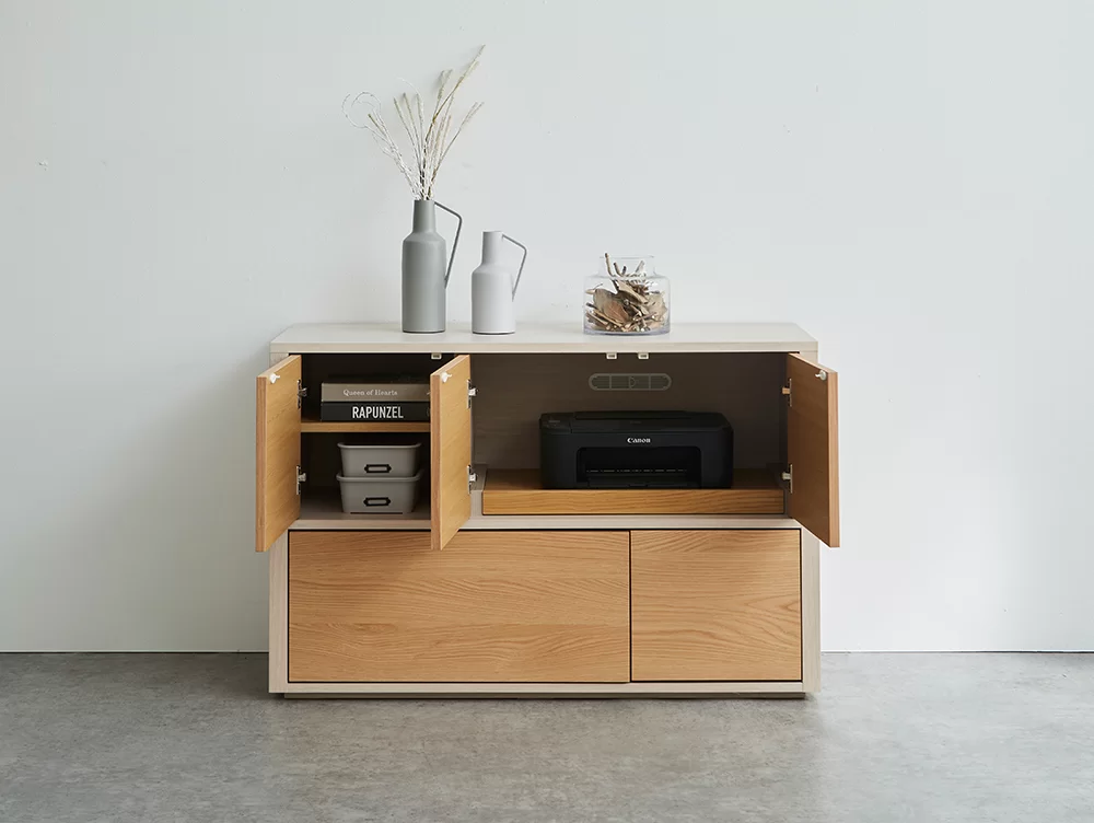 カウンターを導入開き戸の中にスライドカウンターがあるためプリンター等の機器類を隠して収納ができます。