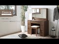 前面・天板・側面に突板を使用した「Cocora( ココラ)」シリーズのドレッサーです。上にはLED ライト、また2 口コンセントも付いております。カラーは3 色からお選びいただけます。正面・左右まで確認が出来る3 面鏡タイプです。