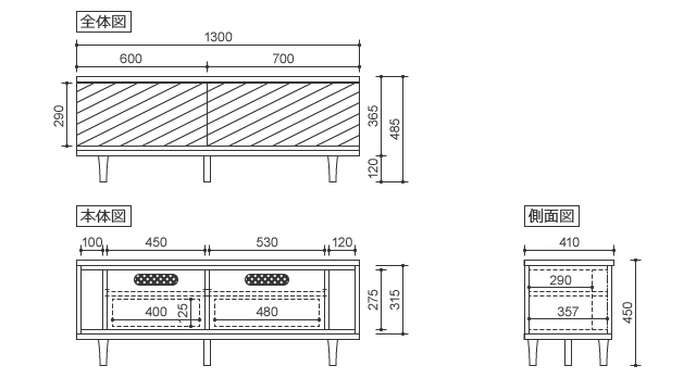 幅130cm / 奥行41cm / 高さ49cm