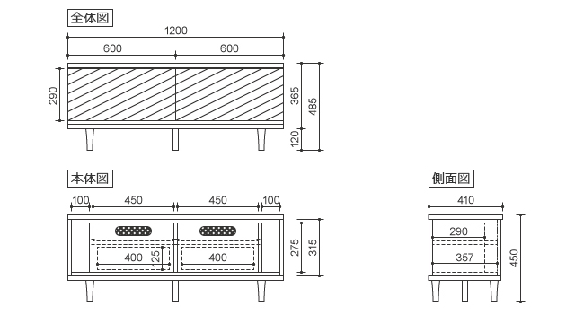 斜めのスリットラインが特徴のローボードです。(※画像は 幅180 WN色)