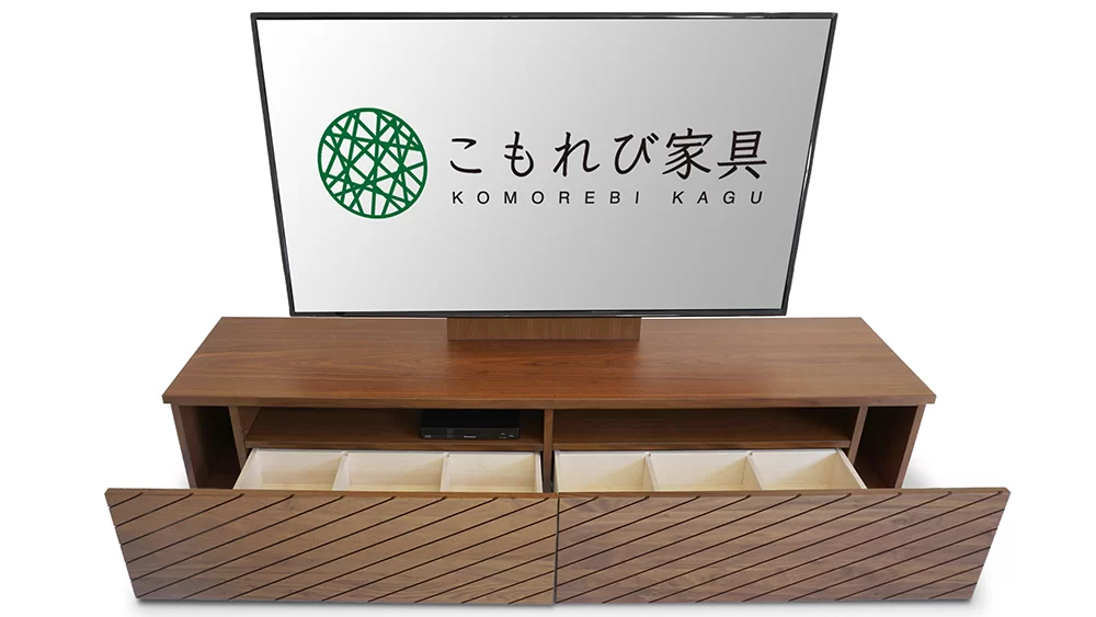 斜めのスリットラインが特徴のローボードです。(※画像は 幅180 WN色)