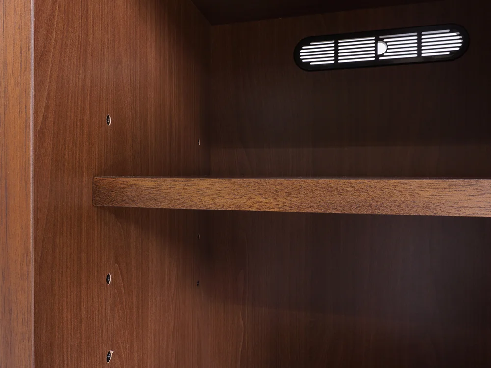 内部にはLED照明があり、照明を灯すことで中に収納されたコレクションが映えます。また、スイッチがあるのでお好みでON/OFFできます。(写真は Colina80キャビネット)