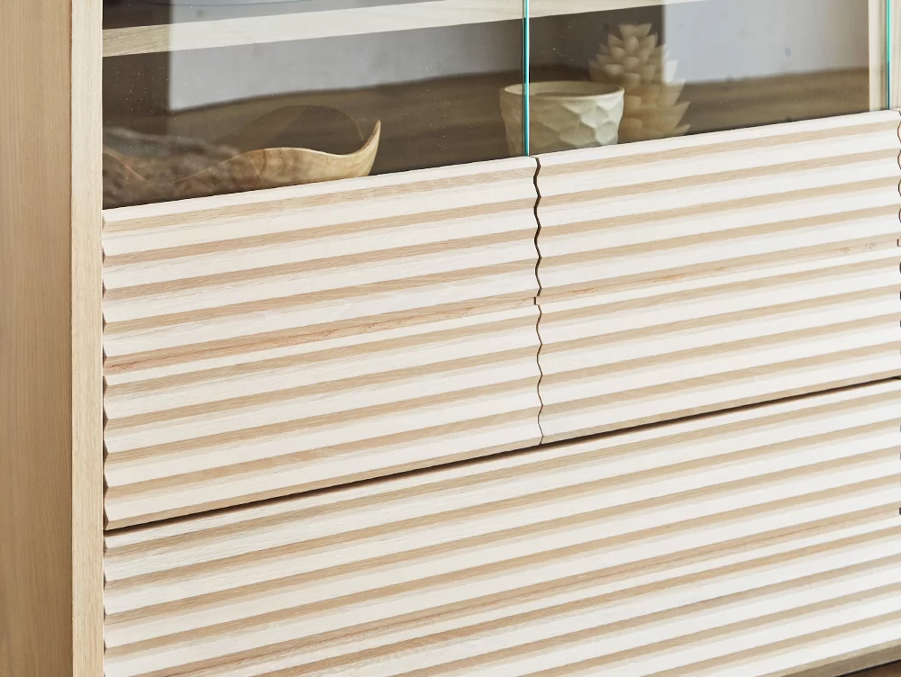 ガラス(強化ガラス)面の割合が大きいため、様々な物を収納し、キャビネットとしてもお使いいただけます。(※画像は 幅120 WN色)
