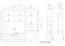 ヴィーダの特長の一つであるサイズオーダーにより、梁の高さいっぱいのサイズで製作されていますね。幅も多少の余裕を持たせながらも大きくスペースを活用し、ほぼピッタリな壁面収納型テレビボードとなっています。