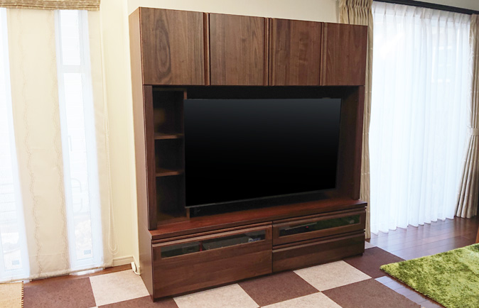 壁面収納型テレビボード(ハイタイプテレビ台)(Vida ウォールナット)の設置事例 No.503